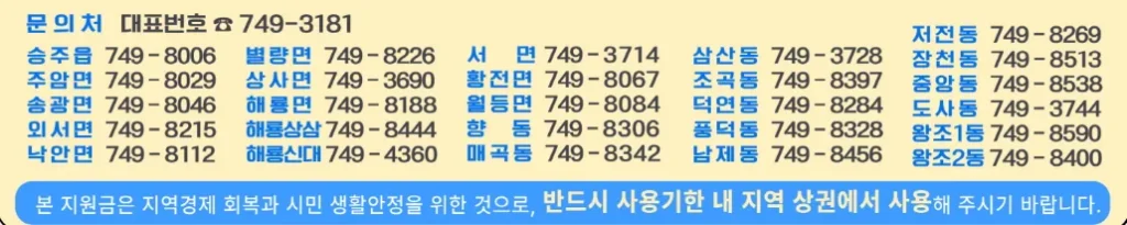 순천시 민생회복지원금 관련 문의는 아래를 통해 확인할 수 있습니다.